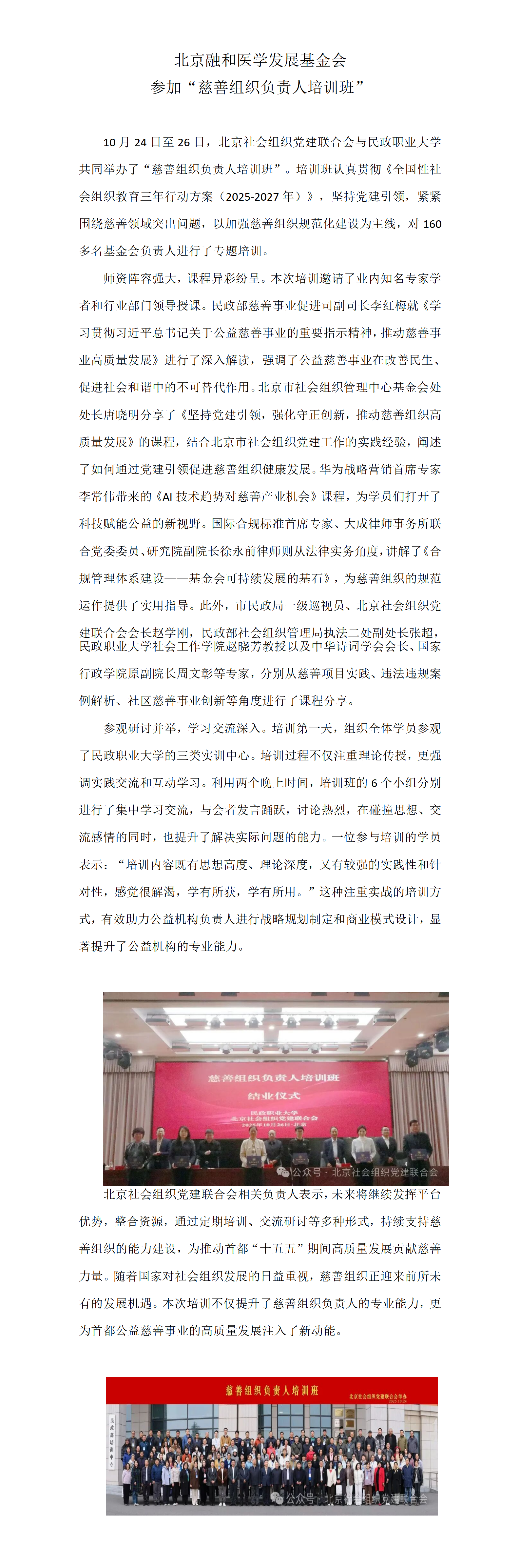 北京融和医学发展基金会参加“慈善组织负责人培训班”