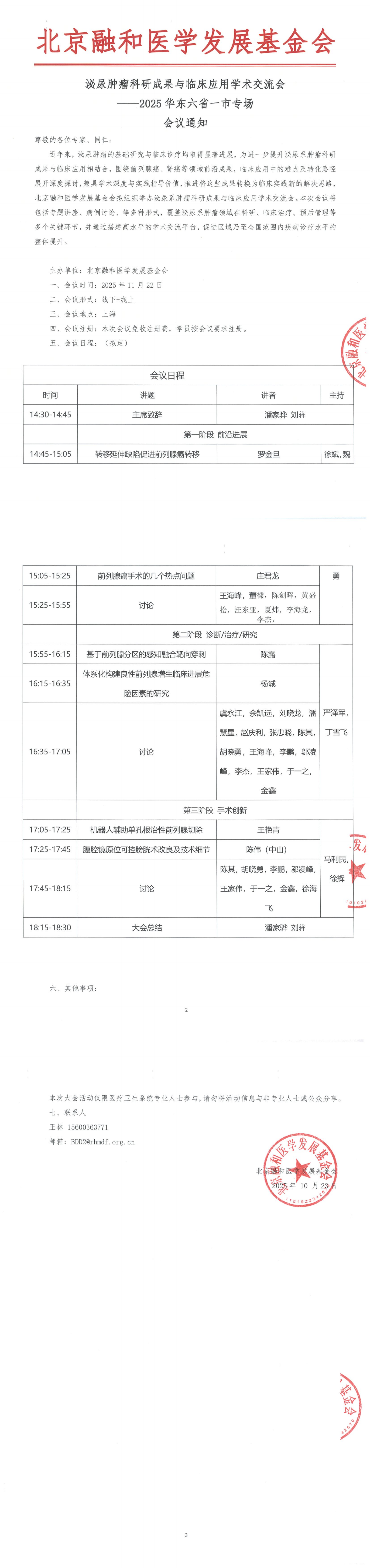 泌尿肿瘤科研成果与临床应用学术交流会——2025华东六省-市专场 会议通知