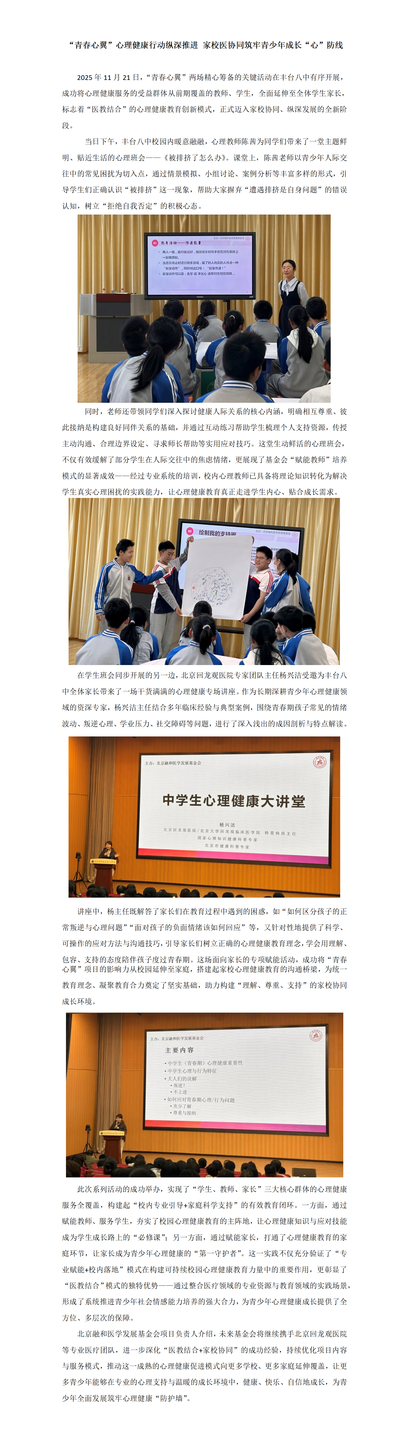 “青春心翼”心理健康行动纵深推进 家校医协同筑牢青少年成长“心”防线