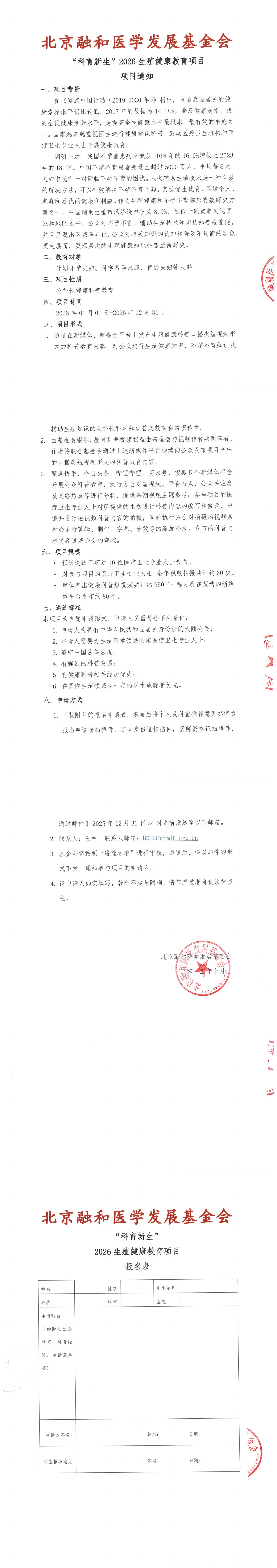 “科育新生”2026生殖健康教育项目 报名表.docx