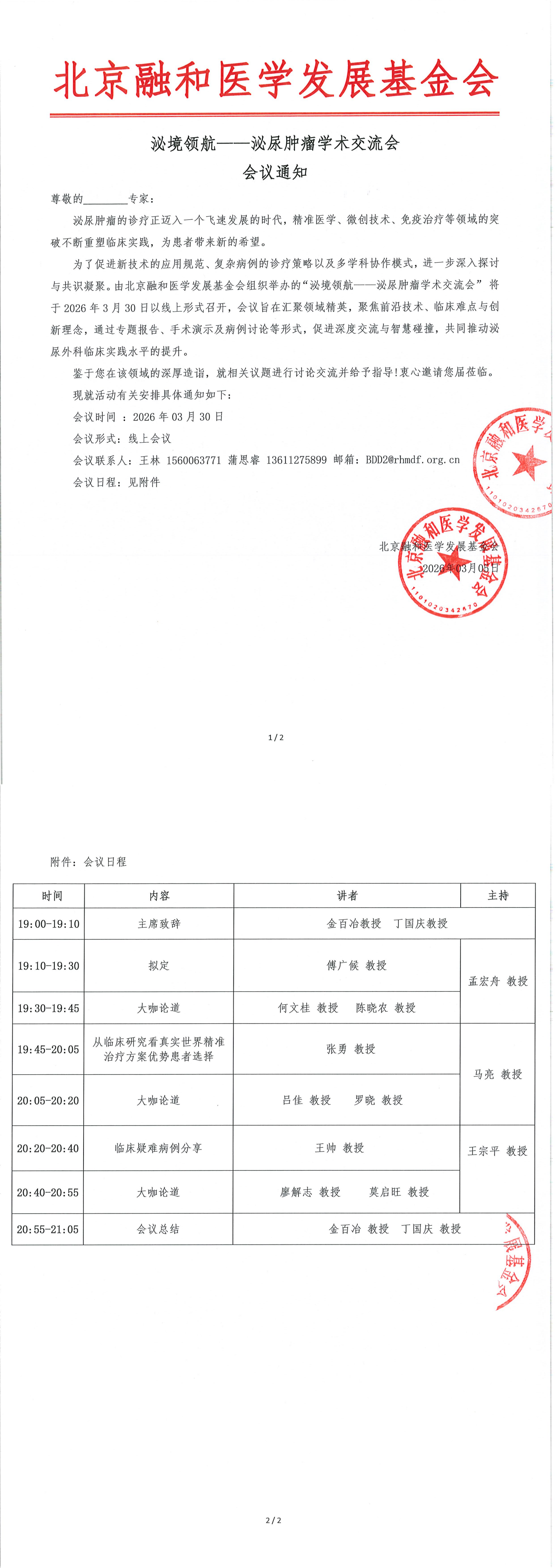 泌境领航——泌尿肿瘤学术交流会 会议通知