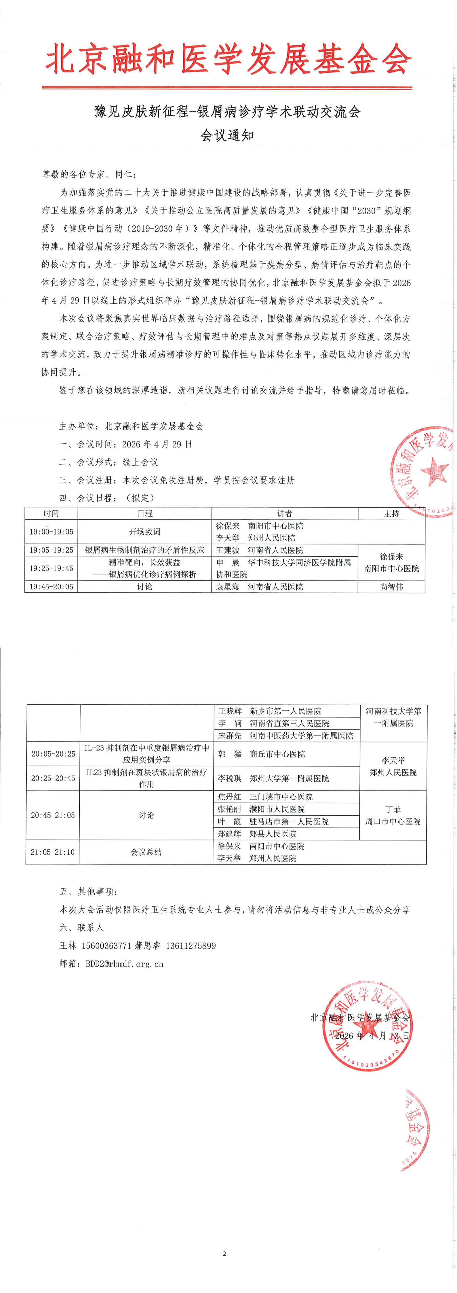 豫见皮肤新征程-银屑病诊疗学术联动交流会 会议通知