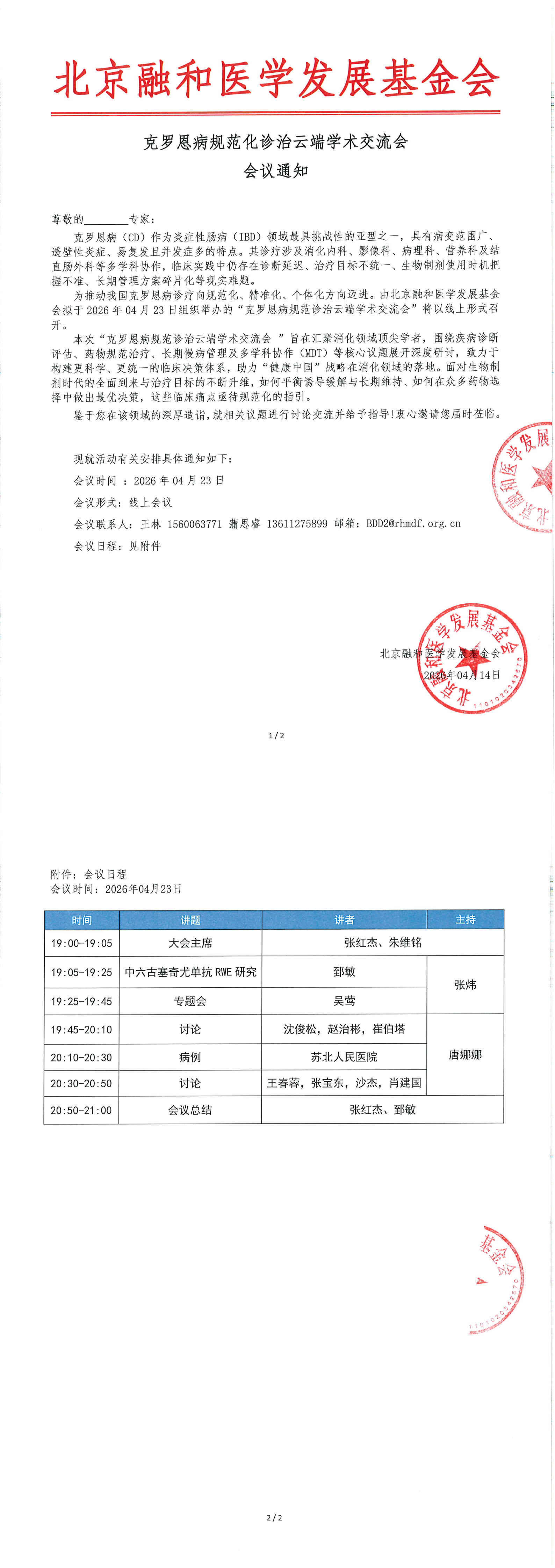 克罗恩病规范化诊治云端学术交流会 会议通知