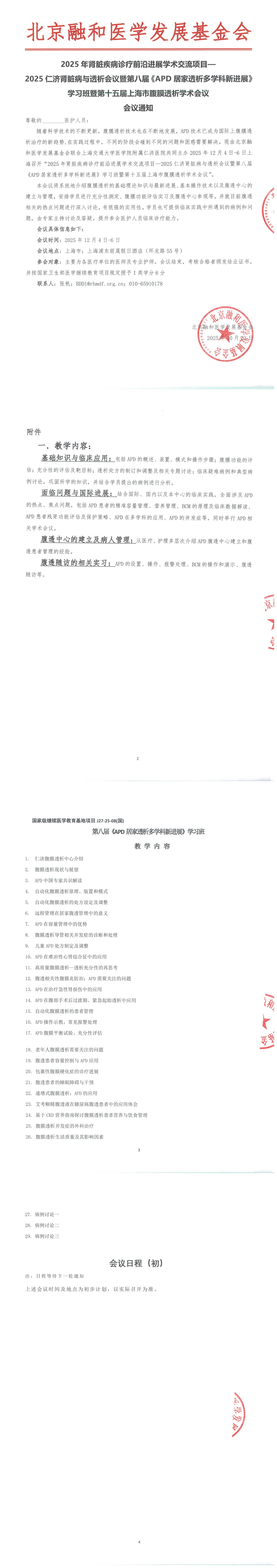 2025年肾脏疾病诊疗前沿进展学术交流项目—2025仁济肾脏病与透析会议暨第八届《APD居家透析多学科新进展》学习班暨第十五届上海市腹膜透析学术会议 会议通知