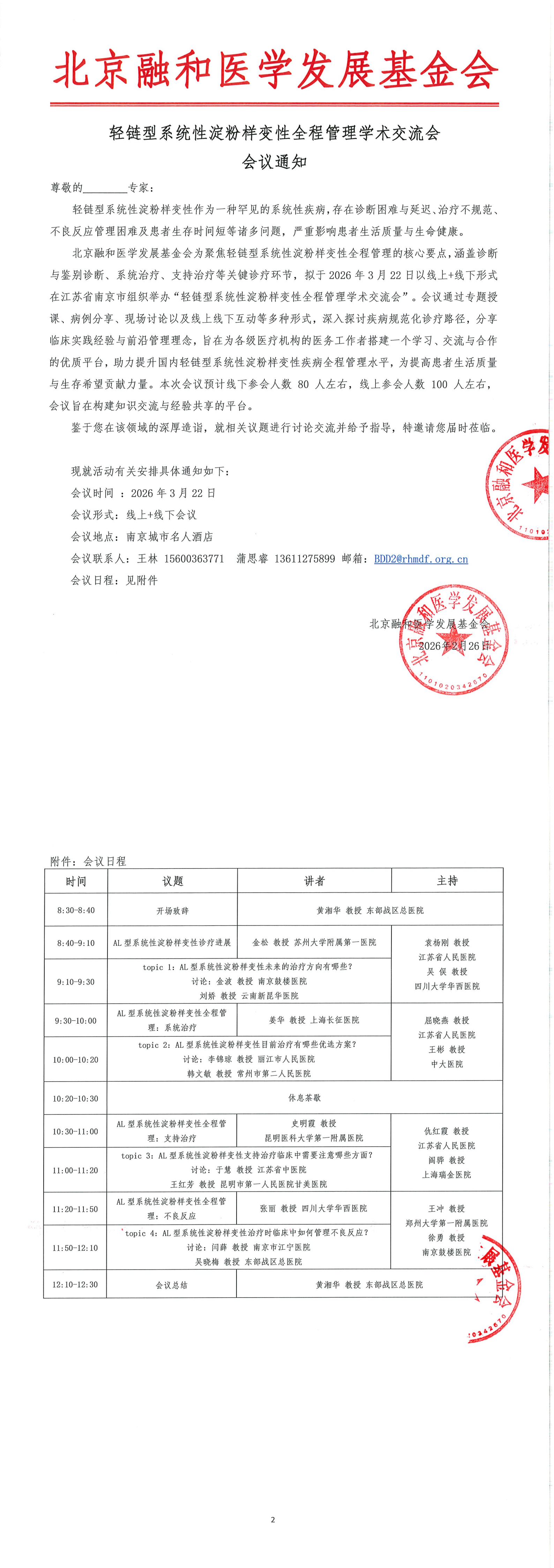 轻链型系统性淀粉样变性全程管理学术交流会 会议通知